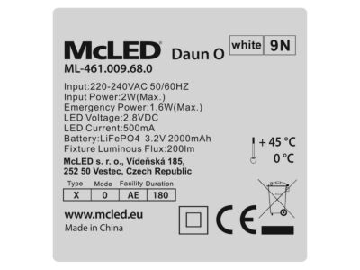 Zapuštěné nouzové svítidlo Daun O, 2W, 2