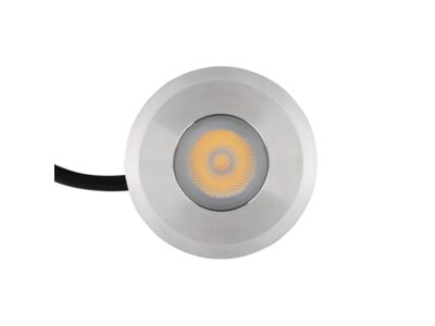Zemní svítidlo, kryt z nerez oceli 304, tělo svítidla z hliníku, difuzor z mléčného tvrzeného skla, příkon světelného zdoroje 2W, DC24V (napájecí zdroj není součástí dodávky), barva světla teple bílá 3000K, přímý vyzařovací úhel 30°, IP67, rozměry svítidla Ø42x70mm, kabel 2x0,75mm2 zakončený voděodolným konektorem s převlečnou maticí M12. Instalační rozměry Ø52x83mm. Záruka 24 měsíců.