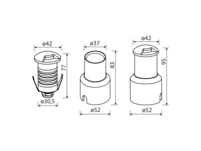 Zemní svítidlo, kryt z nerez oceli 304, tělo svítidla z hliníku, difuzor z mléčného tvrzeného skla, příkon světelného zdoroje 1W, DC24V (napájecí zdroj není součástí dodávky), barva světla teple bílá 3000K, 1x boční vyzařovací úhel, IP67, rozměry svítidla Ø42x77mm, kabel 2x0,75mm2 zakončený voděodolným konektorem s převlečnou maticí M12. Instalační rozměry Ø52x83mm. Záruka 24 měsíců.