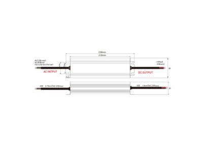 Zdroj konstantního napětí, výkon 200W, krytí IP67, výstup: 12VDC, max. 16,67A. Vstup: 175-264VAC, 50-60Hz, materiál krytu: hliník. Rozměry: 210x58x32mm, hmotnost: 794g. Zdroj SELV. Při výběru zdroje počítejte s výkonovou rezervou min. 20%.