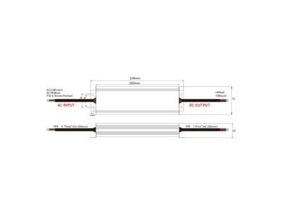 Zdroj konstantního napětí, výkon 300W, krytí IP67, výstup: 24VDC, max. 12,5A. Vstup: 175-264VAC, 50-60Hz, materiál krytu: hliník. Rozměry: 200x72x32mm, hmotnost: 930g. Zdroj SELV. Při výběru zdroje počítejte s výkonovou rezervou min. 20%.