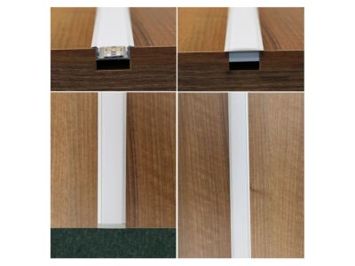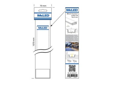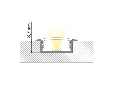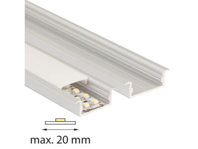 Sada vestavného hliníkového profilu pro LED pásky, rozměry průřezu cca 30x10 mm. Součástí je mléčný difuzor, který lze do profilu nacvaknout. Tento profil je určen pro krytí a chlazení LED pásků do šíře 20 mm. Upevnění k podkladu lze provést pomocí vrutů a lepidel. Součástí sady je i koncovka s otvorem a koncovka bez otvoru. Délka profilu s difuzorem je 1 m.