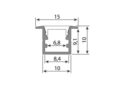 Vestavný hliníkový profil pro LED pásky, rozměry průřezu cca 15x10mm. Součástí je mléčný difuzor, který lze do profilu nacvaknout. Tento profil je určen pro krytí a chlazení LED pásků do šíře až 8mm a výkonu max. 14,4W/m. Pásky šíře 8 mm lze do profilu pouze nasunout!!! Profil lze upevnit pomocí montážních úchytů, vrutů nebo lepidla. K profilu lze zakoupit koncovky.