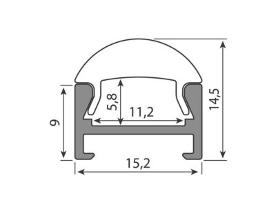 Přisazený hliníkový profil černý pro LED pásky, rozměry průřezu cca 15x9 mm. Součástí je čirý difuzor s čočkou, který lze do profilu nacvaknout. Vyzařovací úhel difuzoru je 30°. Tento profil je určen pro krytí a chlazení LED pásků do šíře 10 mm. Upevnění k podkladu lze provést pomocí vrutů, lepidel. Upevnění lze též provést magnetickým úchytem. K profilu lze zakoupit koncovky.