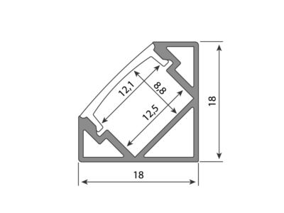Rohový hliníkový profil černý pro LED pásky, rozměry průřezu cca 18x18 mm. Součástí je čirý difuzor, který lze do profilu nacvaknout. Tento profil je určen pro krytí a chlazení LED pásků do šíře 12 mm. Upevnění k podkladu lze provést pomocí montážních úchytů, vrutů, lepidel. K profilu lze zakoupit úchyty a koncovky.