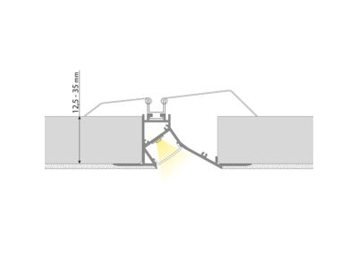 Hliníkový profil pro sádrokarton bílý, rozměry průřezu cca 35x95mm. Součástí je černý difuzor, který lze do profilu nacvaknout. Tento profil je určen pro krytí a chlazení LED pásků do šíře až 20 mm a výkonu max. 38 W/m. Profil lze upevnit pomocí vrutů nebo lepidla. K profilu lze zakoupit také koncovky.