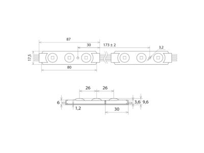 LED modul 3B1RGB 0,65 W, 12 V, 3x LED, IP65, RGB, vyzařovací úhel 160 °, životnost až 30.000 h+, rozměry 87 x 17,5 x 9,6, materiál plast, stmívatelné