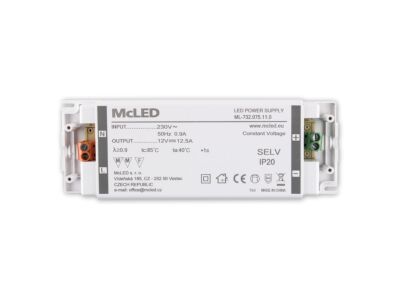 MCLED Napaječ LED 12V/12,5A ML-732.075.11.0 IP20, plastové provedení se svorkovnicí
