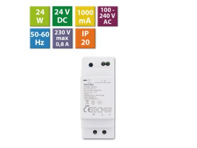 MCLED Napaječ LED 24VDC/1A pro LED pásky 24W, na DIN lištu, IP20