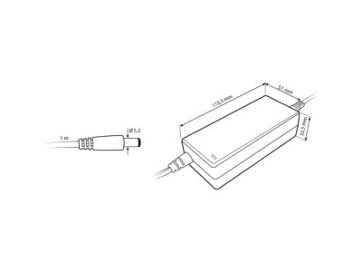 LED napěťový zdroj pro LED pásky 60W, výstup DC 24V/2,5A, konektor 5,5x2,1mm. IP20. Pro připojení do zásuvky. Vstupní napětí 100 - 240V AC, materiál krytu: plast, barva: černá. Rozměry 115,5x51x32,5mm, hmotnost 0,31kg. Zdroj SELV, certifikáty: CE, RoHS. Při výběru zdroje počítejte s výkonovou rezervou min. 20%.