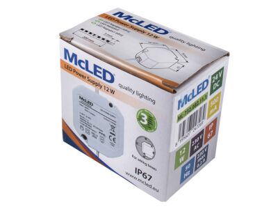 MCLED Napaječ LED DC24V/0,5A, pro LED pásky 12W, do elektroinstalační krabice, IP67