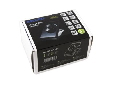 RF dálkový ovladač pro řízení jasu (stmívání) jednobarevných LED pásků umožňuje řízení jedné skupiny RF přijímačů (nejsou součástí), tato skupina může mít neomezeně přijímačů. Rozsah stmívání 0,1 - 100 %. Rozměry ovladače: 96×65×74mm, napájení 1x CR2025 baterie (součástí), dosah cca 20m.