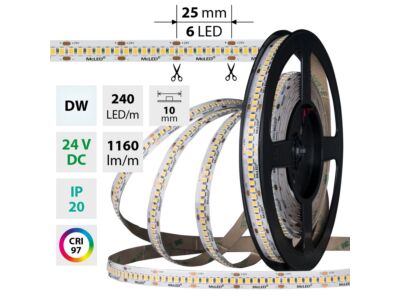 MCLED Pásek LED SMD2835 DW, 240LED/m, 14,4W/m, DC 24V, 1160lm/m, CRI97, IP20, 10mm, 5m