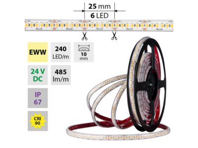 MCLED Pásek LED SMD2835 EWW, 240LED/m, 6W/m, DC 24V, 485lm/m, CRI90, IP67, 10mm, 50m