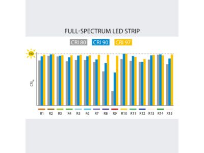LED pásek SMD2835, neutrálně bílá (4200K), 14,4W, 240LED, 1160lm/m, CRI97, segment 25mm, 6LED/segment, IP20, DC 24V, životnost 50000h, šíře 10mm, bílý PCB pásek, max. délka pásku při jednostranném zapojení: 5m, opatřen samolepící páskou 3M, UV stabilní. Balení 50m.