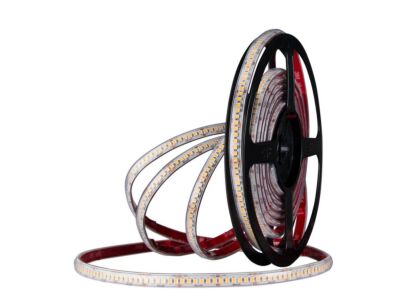 Stmívatelný LED pásek SMD2835, ultra teplá bílá (2000K), 6W, 240LED, 380lm/m, CRI>90, segment 25mm, 6LED/segment, IP67, DC 24V, životnost 50000h, šíře 10mm, bílý PCB pásek, max. délka pásku při jednostranném zapojení: 13m, opatřen samolepící páskou 3M, UV stabilní. Balení 50m.