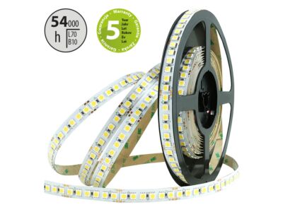 LED pásek SMD5050, studená bílá (6000K), 28,8W, 120LED, 2572lm/m, segment 50mm, 6LED/segment, IP20, DC 24V, životnost 54000h, šíře 12mm, bílý PCB pásek, max. délka pásku při jednostranném zapojení: 5m, opatřen samolepící páskou 3M, UV stabilní.