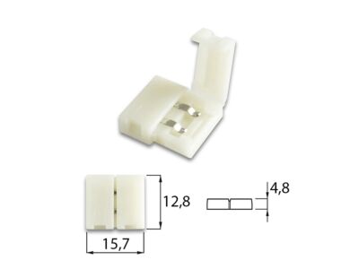 Spojka pro snadné spojení dvou jednobarevných LED pásků šíře 8 mm. Spojka se jednoduše nacvakne přímo na LED pásky, využít lze například pro napojení dvou kratších LED pásků těsně za sebe. Lze použít pro LED pásky s max. 60LED/m. Spojka je konstruována pro max. proud 2A.