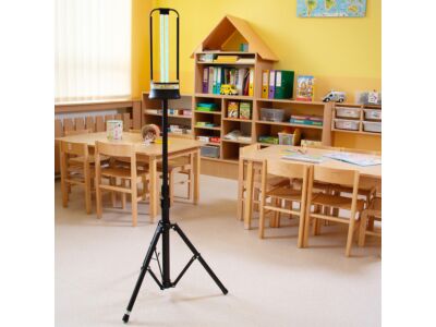 Výškově nastavitelný stativ pro dezinfekční lampu UVC-Protect, plynule nastavitelná výška od 620mm do 1500mm, rozměry složeného stavu ø150x660mm, materiál kov, černá, součástí balení kruhová podstava pod lampu a sada samolepících suchých zipů pro upevnění lampy k podstavě