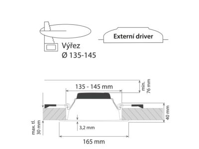 - Montážní průměr 140 mm