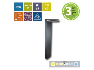 LED venkovní sloupkové svítidlo Framus P, černá barva, 9W, 230V, IP65, neutreální bílá (4000K), světelný tok 635lm, vyzařovací úhel 113°, CRI 80, životnost až 30.000h, rozměry 650 x 180 x 190, materiál hliník/plast, nestmívatelné.