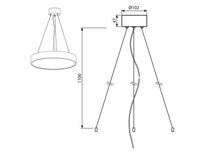 Závěsná sada černá pro svítidla Nova R 600, délka 1,1m, včetně svorkovnice a šňůrového třížilového transparentního přívodu, rozměr rozety 102x47mm, materiál hliník, délka závěsu plynule nastavitelná.
