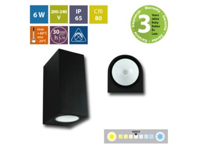 LED nástěnné a fasádní svítidlo Revos 2S, černá barva, 2x3W, 230V, IP65, neutrální bílá (4000K), světelný tok 2x155lm, vyzařovací úhel 37° - svítí do dvou směrů, CRI 80, životnost až 30.000h, rozměry 148 x 68 x 92, materiál hliník/sklo, nestmívatelné.