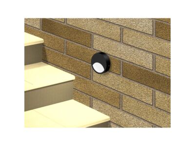 LED nástěnné a fasádní svítidlo Ursa R, černá barva, 1,5W, 230V, IP65, teplá bílá (3000K), světelný tok 58lm, vyzařovací úhel 110°, CRI 80, životnost až 30.000h, rozměry Ø105 x 20, materiál hliník/plast, nestmívatelné.