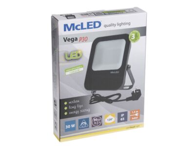 MCLED Svítidlo LED VEGA 30W 3600lm 4000K reflektor 1,5m kabel se zástrčkou IP65