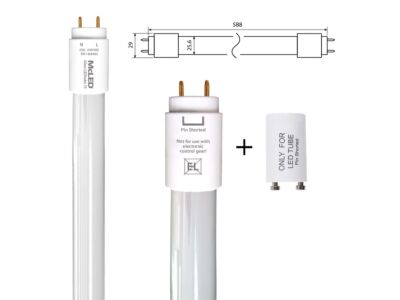 Skleněná LED trubice s PET povlakem, T8 8W (ekvivalent 18W), patice G13, 230V, 4000K - neutrální bílá, světelný tok 1200lm, vyzařovací úhel 320°, CRI80, úspora až 55%, UV stabilní, životnost až 50.000h, 100.000 spínacích cyklů, rozměry ø 29 x 588mm, nestmívatelná. LED startér součástí balení. Bezpečnostní PET fólie zabraňující vysypání střepů.