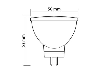 LED žárovka MR16 spot 4,6W (ekvivalent 35W), patice GU5.3, 12VAC/DC, barevná teplota 4000K - neutrální bílá, světelný tok Φ use 360° 400lm, vyzařovací úhel 100°, CRI80, úspora oproti halogenu 86%, životnost až 25.000h, 15.000 spínacích cyklů, rozměry ø 50 x 53 mm, nestmívatelná