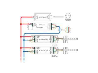 RGBW zesilovač pro jednobarevné, CCT, RGB a RGBW LED pásky. Připojuje se za RF přijímač a umožňuje synchronní řízení dlouhých úseků LED pásků pomocí jediného ovladače (není součástí), PWM signál. Rozměry: 178x46x22mm. Vstupní napětí: DC 12-36V. 4 kanály s max. zátěží 5A na 1 kanál (= jedna barva R/G/B/W): 60W/12V, 120W/24V, 180W/36V na kanál. Celková max. zátěž 10A: 120W/12V, 240W/24V, 360W/36V.