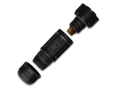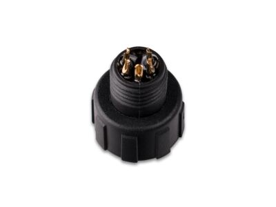 Zásuvka s převlečnou maticí, IP67, pájecí, pozlacené kontakty, M12, 5pinů - například pro RGB+W LED pásky. Průřez připájitelného kabelu max. 0,3mm², průměr kabelu 4,5-6,5mm, max. 5A/60V. Rozměry: 40x15,7mm.