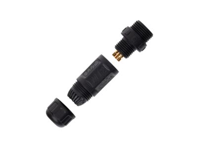 Vidlice bez převlečné matice, IP67, pájecí, M12, 3piny, pozlacené kontakty, M12, 3piny - například pro dual white (CCT) LED pásky. Průřez připájitelného kabelu max. 0,75mm², průměr kabelu 4,5-6,5mm, max. 10A/110V. Rozměry: 41,5x15,2mm.