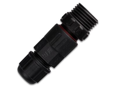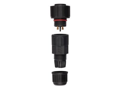 Vidlice s převlečnou maticí, IP67, pozlacené kontakty, M16, 2piny - například pro napájení podzemních svítidel Graund. Průřez připájitelného kabelu max. 1,5mm², průměr kabelu 5,5-7,5mm, max. 15A/250V. Rozměry: 50x19,2mm.