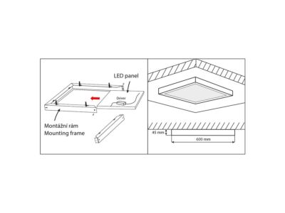 Montážní rám ke svítidlu Office 6060 v bílé barvě, 600x600x45mm, materiál kov. Pomocí rámu lze použít LED panel jako elegantní přisazené svítidlo.