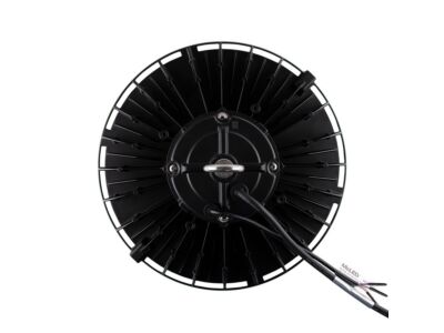 LED průmyslové svítidlo 200 W, černý, 230 V, IP65, 5000 K, světelný tok 28030 lm, vyzařovací úhel 60 °, CRI80, životnost > 50.000 h, rozměry ø 330 x 169 mm, materiál hliník/plast, stmívatelné 0-10 V, PF>0,96, ke svítidlu lze dokoupit Al nebo PC reflektor a pohybové čidlo.