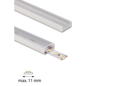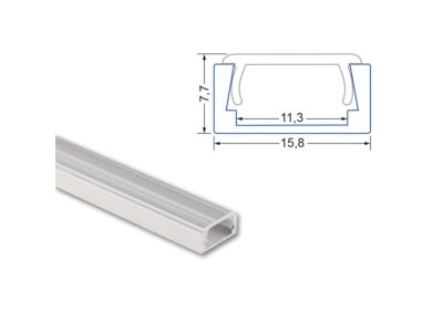 Přisazený hliníkový profil pro LED pásky, rozměry průřezu cca 17x8 mm. Součástí je čirý difuzor, který lze do profilu nacvaknout. Tento profil je určen pro krytí a chlazení LED pásků do šíře 11 mm. Upevnění k podkladu lze provést pomocí montážních úchytů, vrutů, lepidel. K profilu lze zakoupit úchyty a koncovky.
