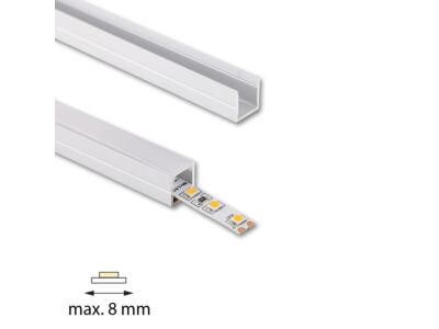 Přisazený hliníkový profil pro LED pásky, rozměry průřezu cca 11x11 mm. Součástí je mléčný difuzor, který lze do profilu nacvaknout. Tento profil je určen pro krytí a chlazení LED pásků do šíře 8 mm. Upevnění k podkladu lze provést pomocí montážních úchytů, vrutů, lepidel. K profilu lze zakoupit úchyty a koncovky.