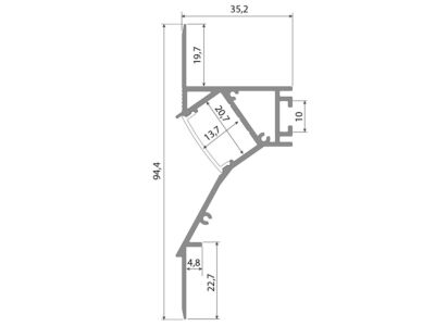 Hliníkový profil pro sádrokarton, rozměry průřezu cca 35x95mm. Součástí je mléčný difuzor, který lze do profilu nacvaknout. Tento profil je určen pro krytí a chlazení LED pásků do šíře až 20 mm a výkonu max. 38 W/m. Profil lze upevnit pomocí vrutů nebo lepidla. K profilu lze zakoupit také koncovky.