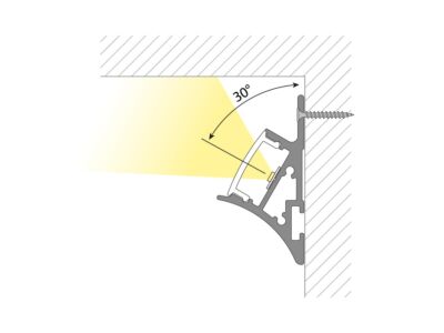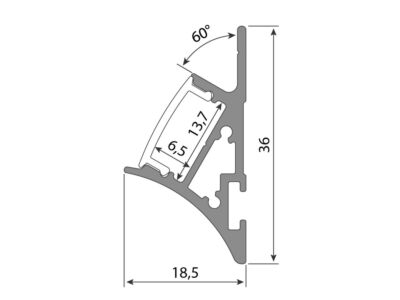 Nástěnný hliníkový profil, rozměry průřezu cca 36x19mm. Součástí je čirý difuzor, který lze do profilu nacvaknout. Tento profil je určen pro krytí a chlazení LED pásků do šíře až 12 mm a výkonu max. 19,2W/m. Profil lze upevnit pomocí vrutů nebo lepidla. K profilu lze zakoupit také koncovky.