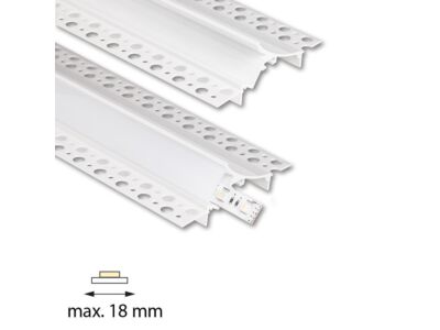 Hliníkový profil pro sádrokarton, rozměry průřezu cca 35x96mm. Součástí je čirý difuzor, který lze do profilu nacvaknout. Tento profil je určen pro krytí a chlazení LED pásků do šíře až 18 mm a výkonu max. 28,8 W/m. Profil lze upevnit pomocí vrutů nebo lepidla. K profilu lze zakoupit také koncovky.