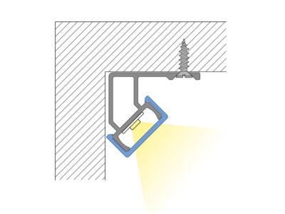 Hliníková základna k rohovému profilu REA, bez difuzoru. Tento profil je určen pro krytí a chlazení LED pásků s IP67, IP68 do šíře až 10 mm a výkonu max. 14,4 W/m. K tomuto profilu není difuzor. Profil lze přivrtat nebo přilepit. K profilu lze zakoupit upevňovací spony.