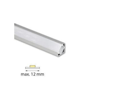 Hliníková základna k rohovému profilu RT2, bez difuzoru. Lze dokoupit mléčný difuzor. Tento profil je určen pro krytí a chlazení LED pásků do šíře až 12 mm a výkonu max. 19,2 W/m. Profil lze upevnit pomocí samostatně prodávaných kovových úchytů, případně jej lze přivrtat nebo přilepit. K profilu s difuzorem lze zakoupit také koncovky.