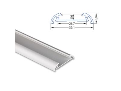 Přisazený hliníkový profil pro LED pásky, rozměry průřezu cca 40x9 mm. Součástí je mléčný difuzor, který lze do profilu nasunout. Tento profil je určen pro krytí a chlazení LED pásků do šíře 26 mm. Upevnění k podkladu lze provést pomocí montážních úchytů, vrutů, lepidel. K profilu lze zakoupit úchyty a koncovky.