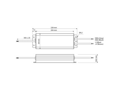 LED stmívatelný zdroj 150W, typ Mean Well HLG-150H-24B. Stmívání signálem 1-10VDC, PWM, proměnným odporem (100kohm). Krytí IP67, výstup 24VDC, 6,3A. Vstup: 90-305VAC, 47-63Hz, účinnost > 93%, PF > 0,95, materiál krytu: hliník. Rozměry: 228x68x38,8mm, hmotnost: 1150g. Při volbě zdroje počítejte s výkonovou rezervou min. 20%.