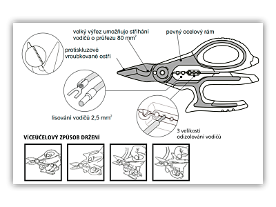 NG TOOL Nůžky NK 000 602 multifunkční kabelové do 80 mm² délka 170 mm
