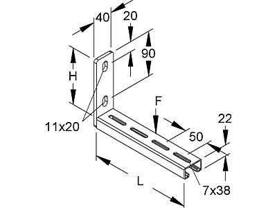 Závěs a nástěnný výložník, standardní, pro montáž kabelových žlabů s nízkou výškou, včetně odpovídajícího žárově pozinkovaného upevňovacího příslušenství. Údaje o únosnosti platí pouze v případě dostatečného ukotvení k nosnému podkladu, resp. v případě montáže na závěs v souladu s předpisy. Rozměry (přibližné míry) v x š x d : 114 x 40 x 404 mm Únosnost F při d/2 : 0,75 kN testováno v systému Materiál : ocel, žárově zinkovaná ponorem dle DIN EN ISO 1461