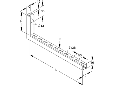 Závěs a nástěnný výložník, standardní, pro montáž kabelových žlabů s nízkou výškou, včetně odpovídajícího žárově pozinkovaného upevňovacího příslušenství. Údaje o únosnosti platí pouze v případě dostatečného ukotvení k nosnému podkladu, resp. v případě montáže na závěs v souladu s předpisy. Rozměry (přibližné míry) v x š x d : 155 x 40 x 504 mm Únosnost F při d/2 : 2 kN testováno v systému Materiál : ocel, žárově zinkovaná ponorem dle DIN EN ISO 1461