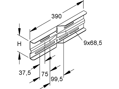 - Vhodné pro výšku kabelových nosných systémů 105 - 105 mm